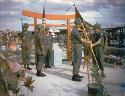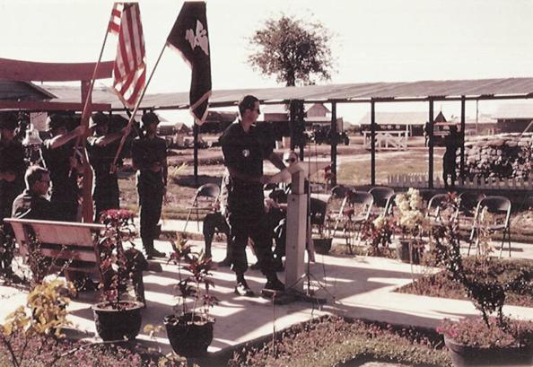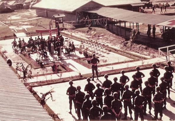 There are two pics of the First Anniversary in Country ceremony of the 45th Surg, also taken at the Wratten Memorial. I'm at the podium.